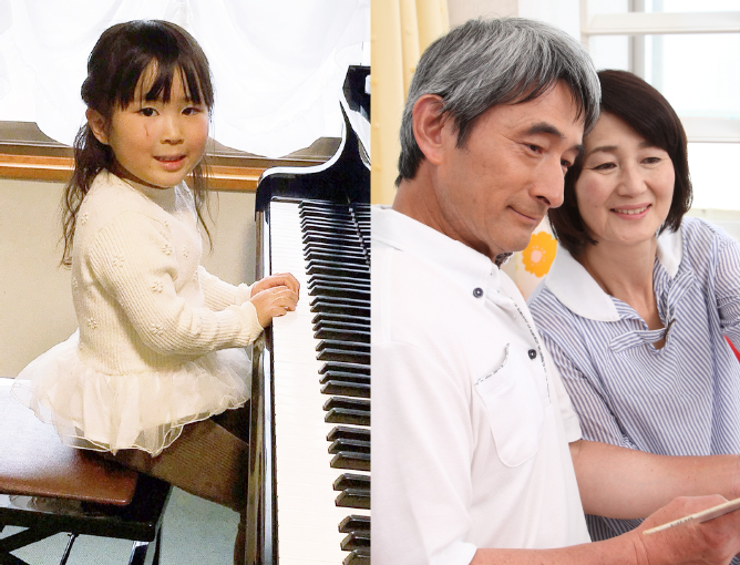 「生涯現役100歳」音楽を通じて、大きな声で気持ちよく歌ったり、指先を使うピアノで脳の活性化をアップし、70・80歳いくつからでも気軽にチャレンジして学んで頂けます。